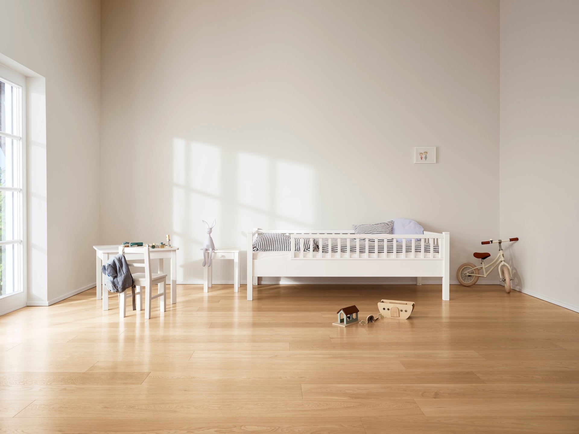 Unser vielseitiges Kinder-Couchbett ist die ideale Lösung für jedes wachsende Kinderzimmer. Der Rausfallschutz lässt sich flexibel abmontieren, und dank unserer cleveren Umbausätze kann das Couchbett mühelos in ein gemütliches Baldachinbett, ein Etagenbett oder ein Spielbett verwandelt werden. Das durchdachte Design passt sich den wechselnden Bedürfnissen Ihres Kindes an und verwandelt das Zimmer in eine aufregende Abenteuerlandschaft. So wächst das Bett mit Ihrem Kind mit und bereitet über viele Jahre hinweg Freude. Ob als Rückzugsort, Abenteuerspielplatz oder Schlafplatz – unser Couchbett ist der perfekte Begleiter in jeder Lebensphase.